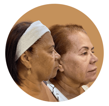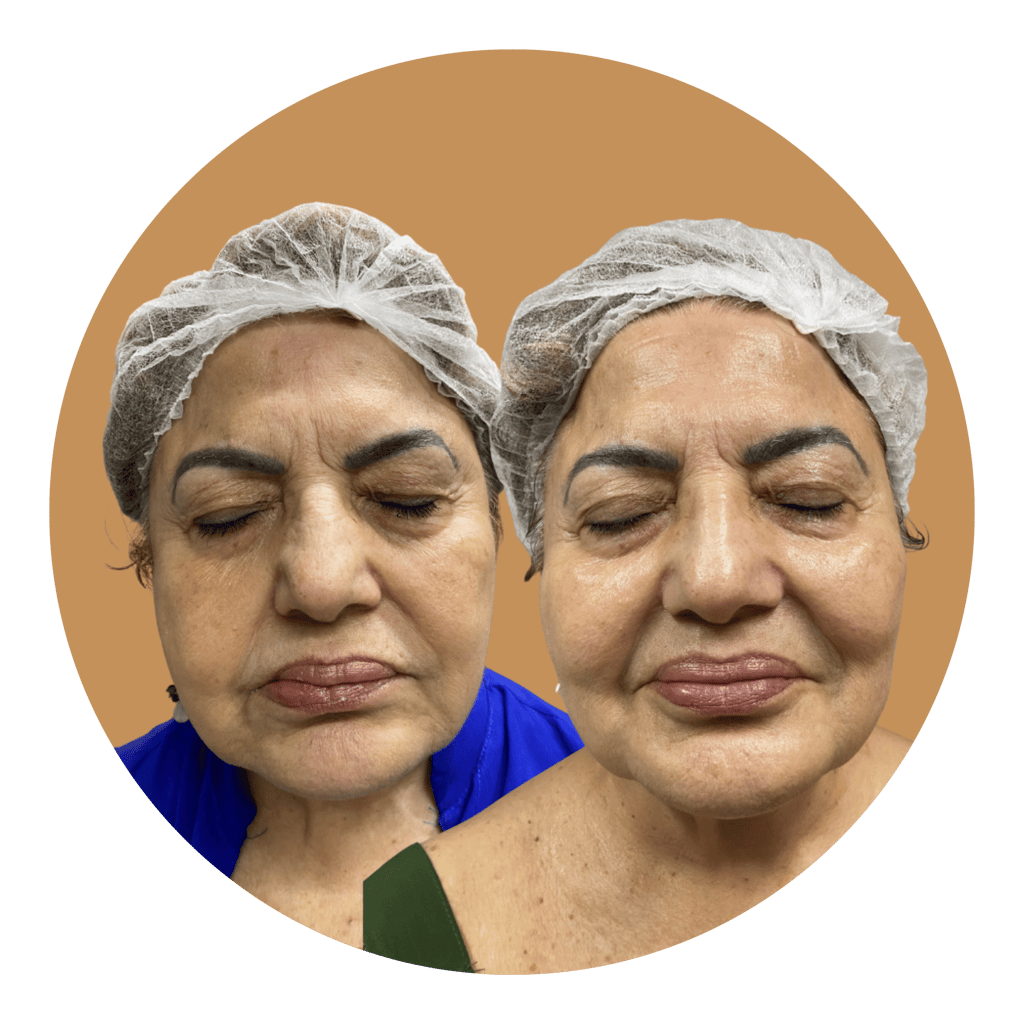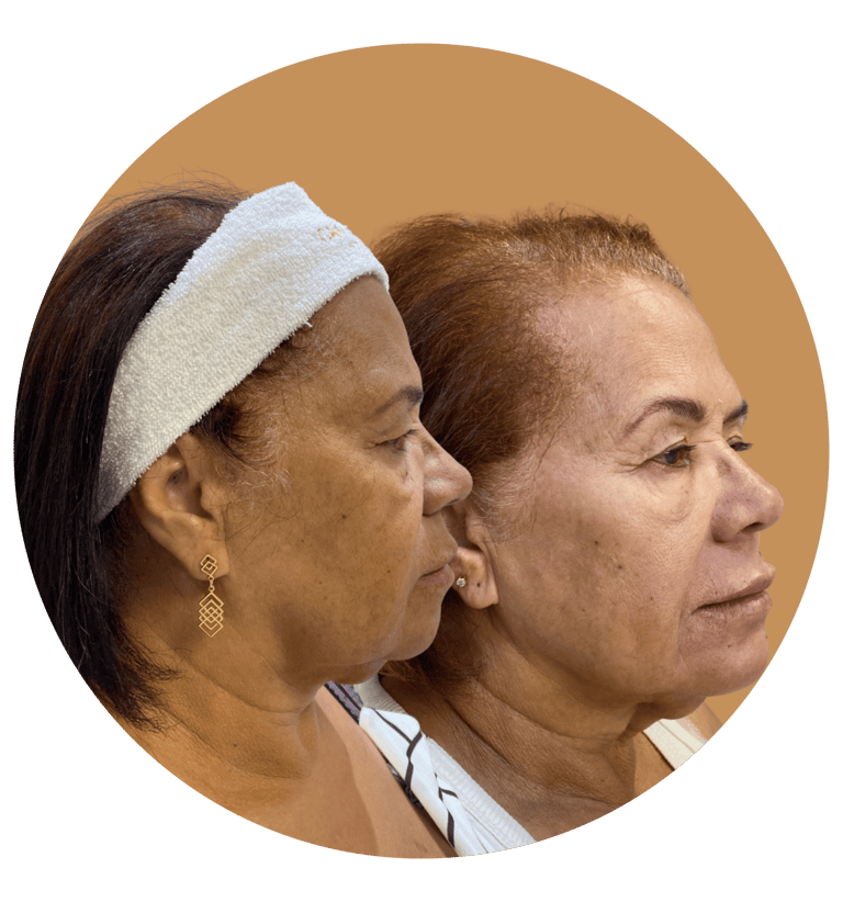 Trabalhamos pontos estratégicos como as maçãs do rosto, mandíbula e têmporas para recuperar o contorno e o viço. O resultado? Uma aparência descansada, jovem e, acima de tudo, natural.